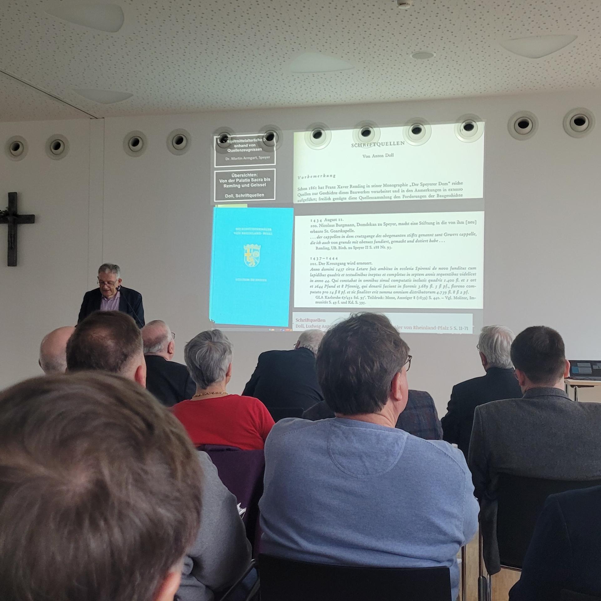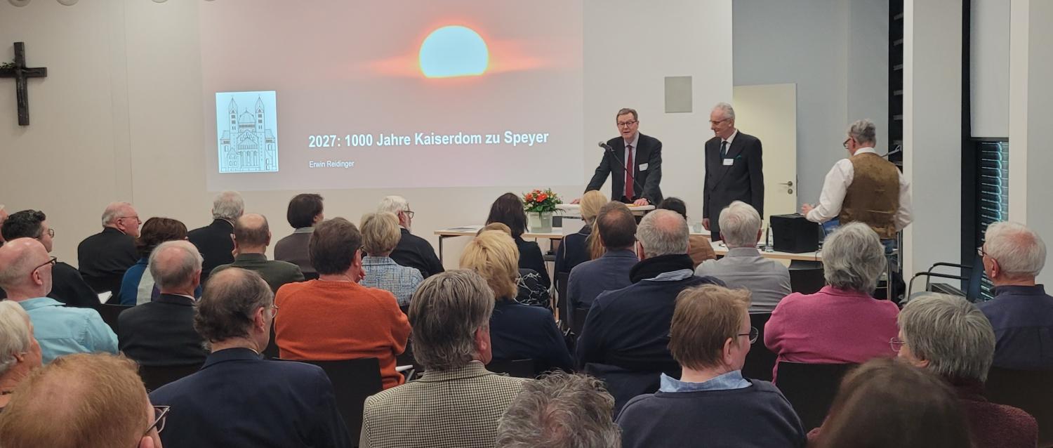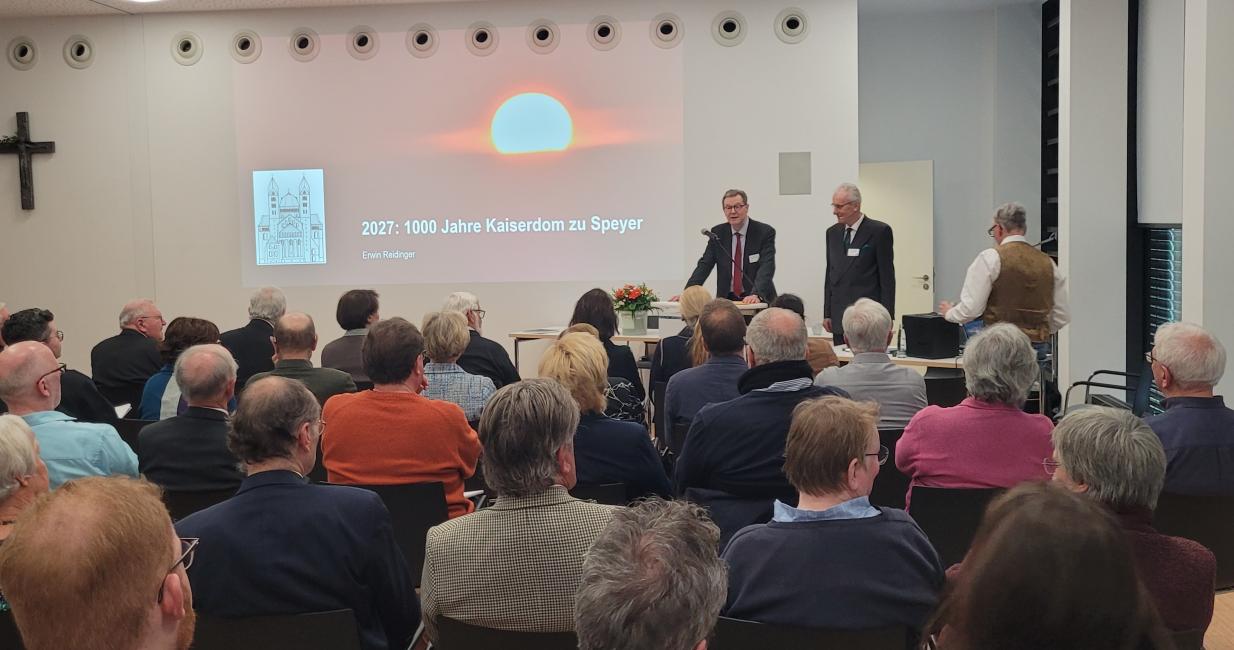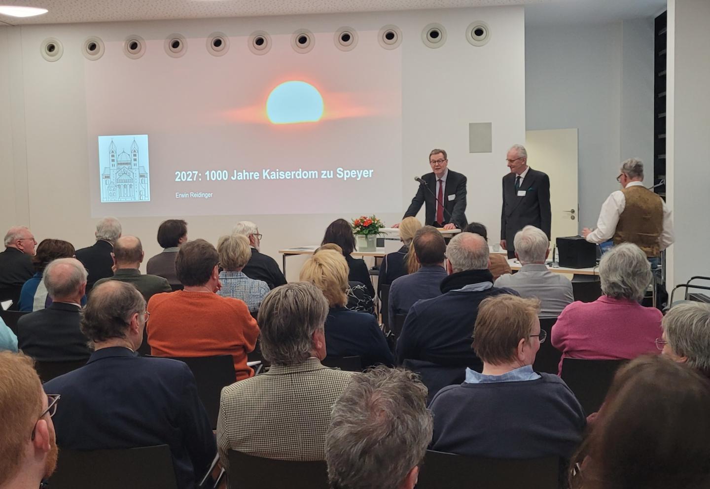 Die diesjährige Jahrestagung wurde vom Bistum Speyer ausgerichtet und fand im Priesterseminar St. German statt. Die überaus gut besuchte Veranstaltung beschäftigte sich bei strahlendem Frühlingswetter mit dem Thema „Der Dom zu Speyer im Laufe des vergangenen Jahrtausends“. Eröffnet wurde die Tagung am Donnerstagabend mit einem Vortrag von Herrn Professor Dr. Erwin Reidinger (Winzendorf/Niederösterreich) zum Thema 2027: 1000 Jahre Kaiserdom zu Speyer. Unter Berücksichtigung archäoastronomischer Daten plädierte Reidinger in seinen Ausführungen für das Jahr 1027 als Erbauungsjahr des Speyerer Doms. Die weiteren Vorträge beschäftigten sich u.a. mit der Zerstörung des Doms im Neunjährigen Krieg (Pfälzischer Erbfolgekrieg) und dem Wiederaufbau im 18. Jahrhundert, der Baupolitik König Ludwigs I. von Bayern, den Domjubiläen des 19. und 20. Jahrhunderts sowie den Restaurierungsarbeiten am Dom seit 1930.