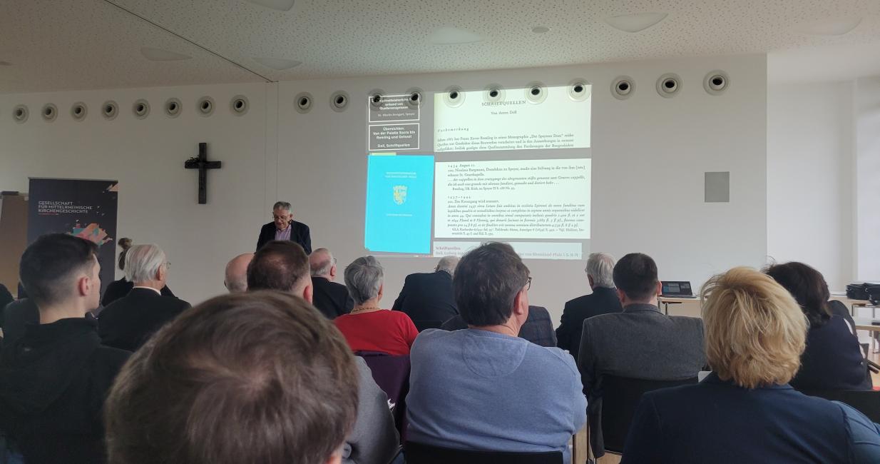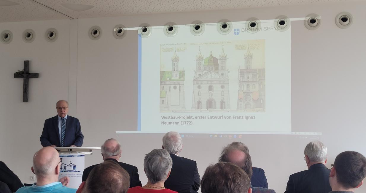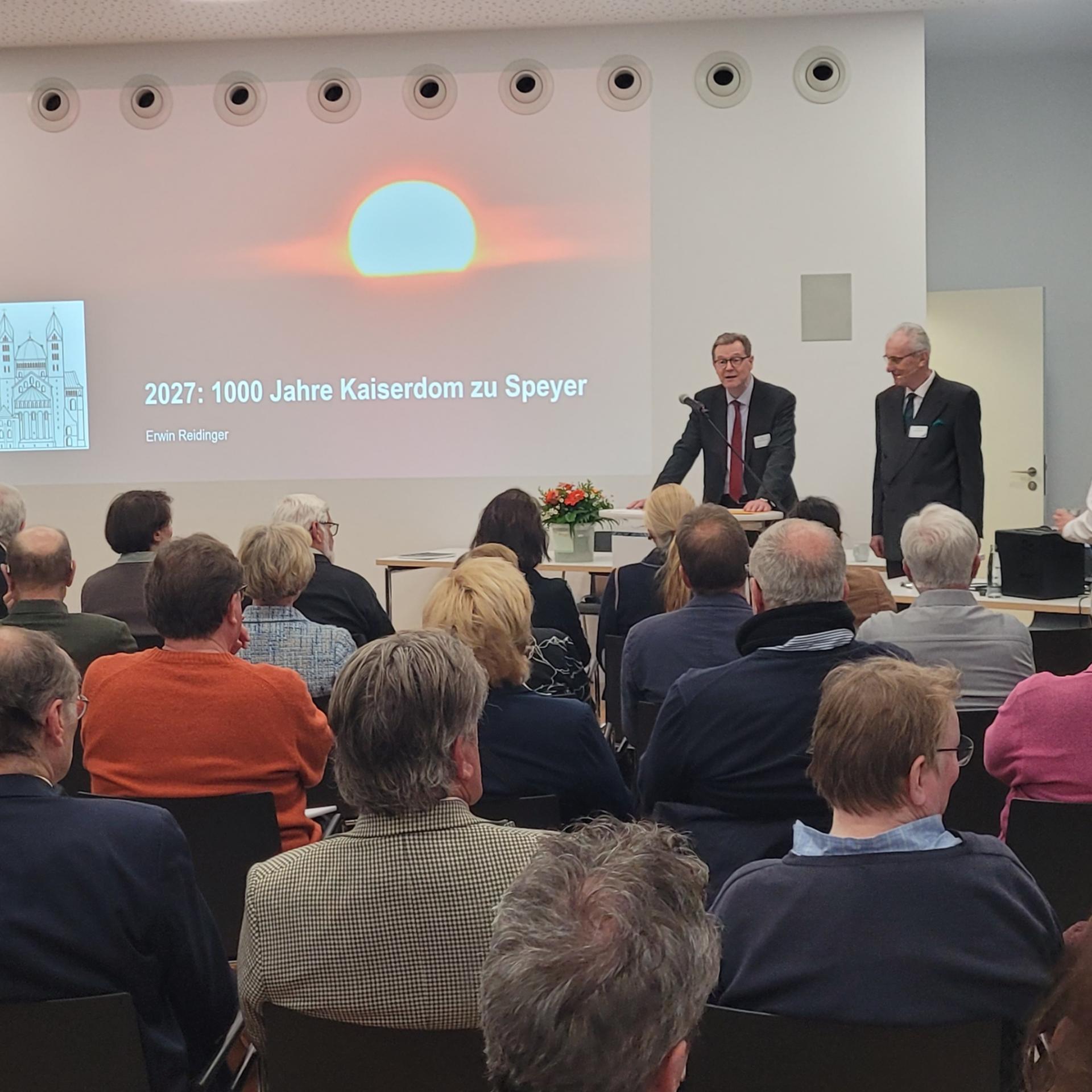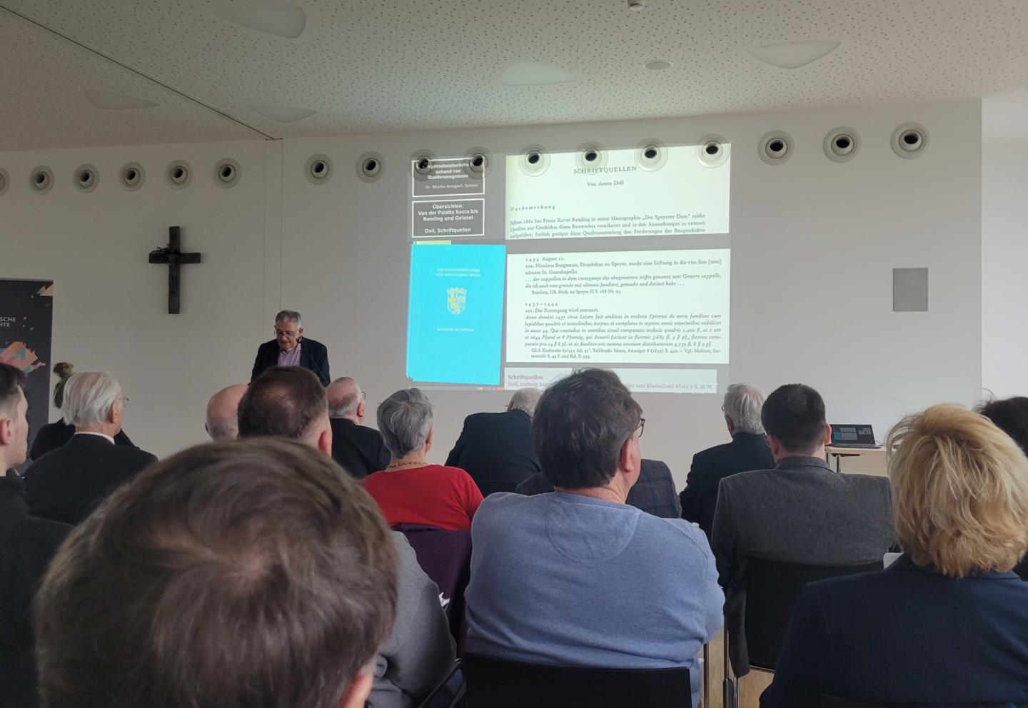 Die diesjährige Jahrestagung wurde vom Bistum Speyer ausgerichtet und fand im Priesterseminar St. German statt. Die überaus gut besuchte Veranstaltung beschäftigte sich bei strahlendem Frühlingswetter mit dem Thema „Der Dom zu Speyer im Laufe des vergangenen Jahrtausends“. Eröffnet wurde die Tagung am Donnerstagabend mit einem Vortrag von Herrn Professor Dr. Erwin Reidinger (Winzendorf/Niederösterreich) zum Thema 2027: 1000 Jahre Kaiserdom zu Speyer. Unter Berücksichtigung archäoastronomischer Daten plädierte Reidinger in seinen Ausführungen für das Jahr 1027 als Erbauungsjahr des Speyerer Doms. Die weiteren Vorträge beschäftigten sich u.a. mit der Zerstörung des Doms im Neunjährigen Krieg (Pfälzischer Erbfolgekrieg) und dem Wiederaufbau im 18. Jahrhundert, der Baupolitik König Ludwigs I. von Bayern, den Domjubiläen des 19. und 20. Jahrhunderts sowie den Restaurierungsarbeiten am Dom seit 1930.