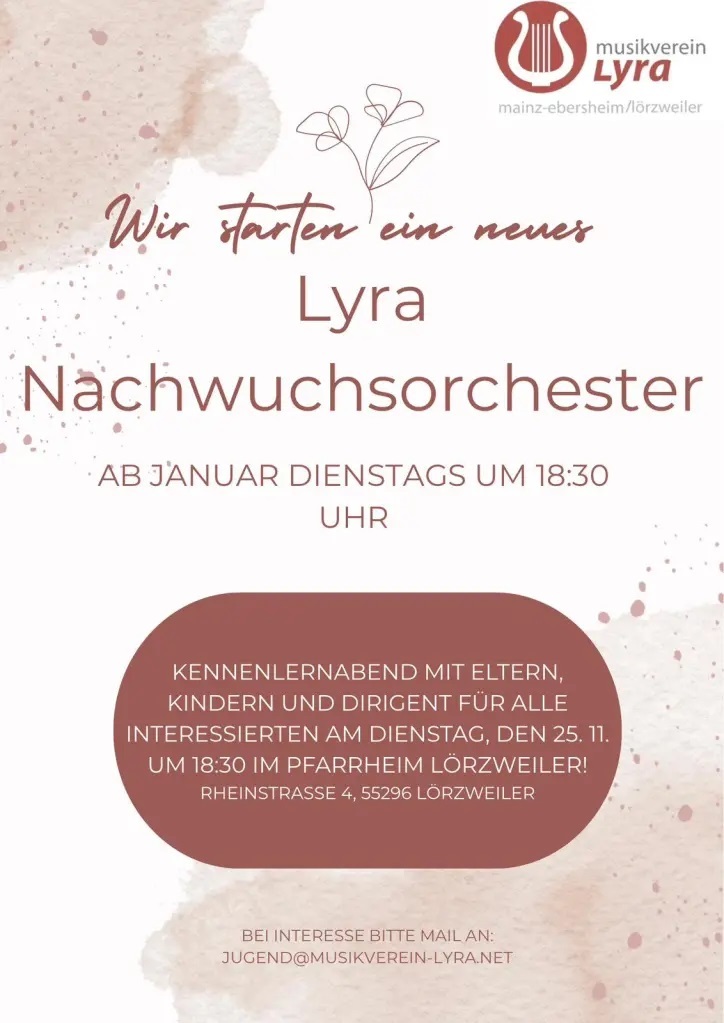 | | Aufbau eines Nachwuchsorchesters | | | Der Musikverein Lyra Mz-Ebersheim-Lörzweiler startet ein neues Projekt. | | | » Weiterlesen |
