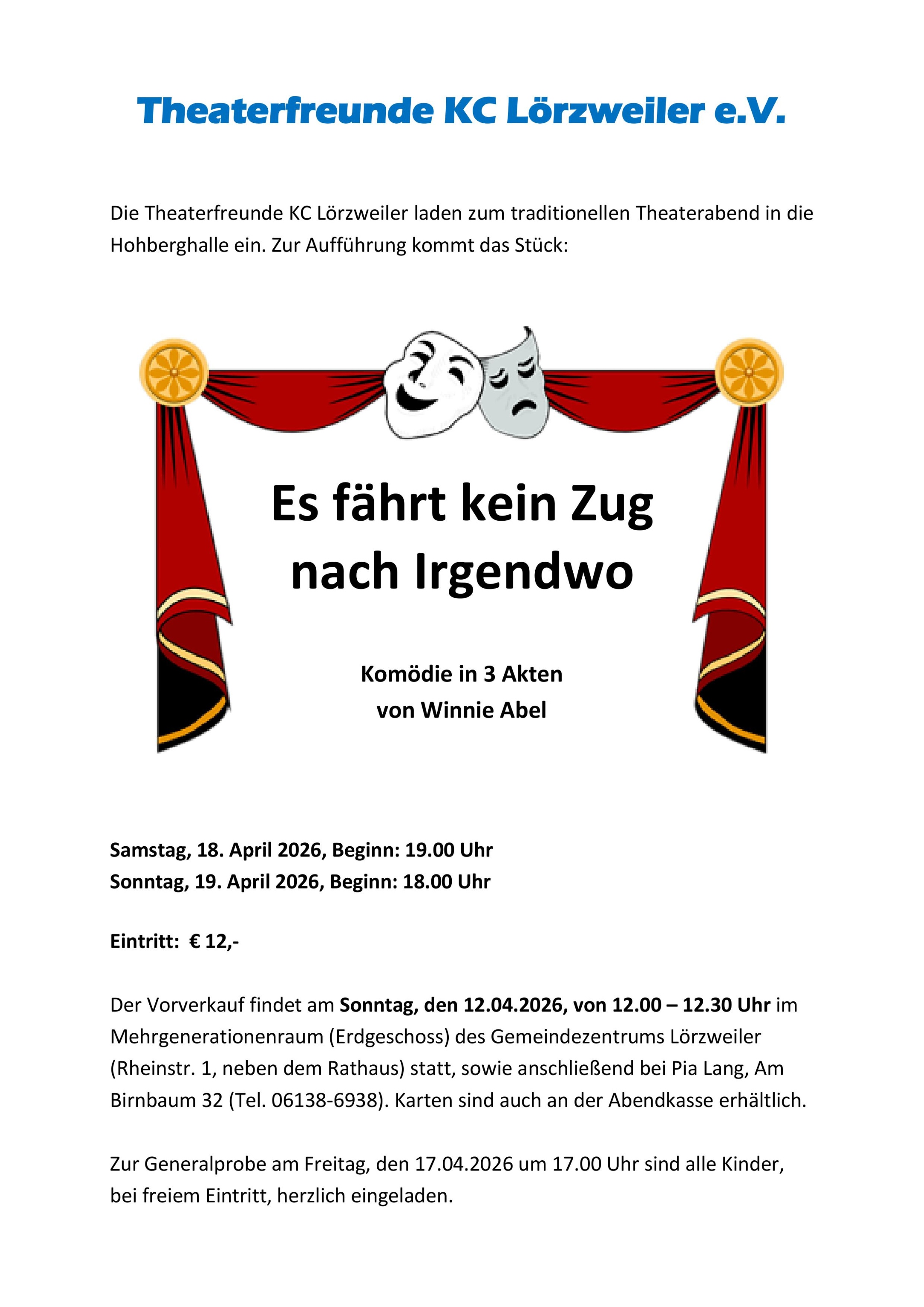 Der Verein Theaterfreunde KC Lörzweiler e.V. ist hervorgegangen aus dem Kirchenchor 1838 „Cäcilia“ Lörzweiler und mit diesem