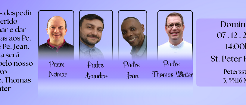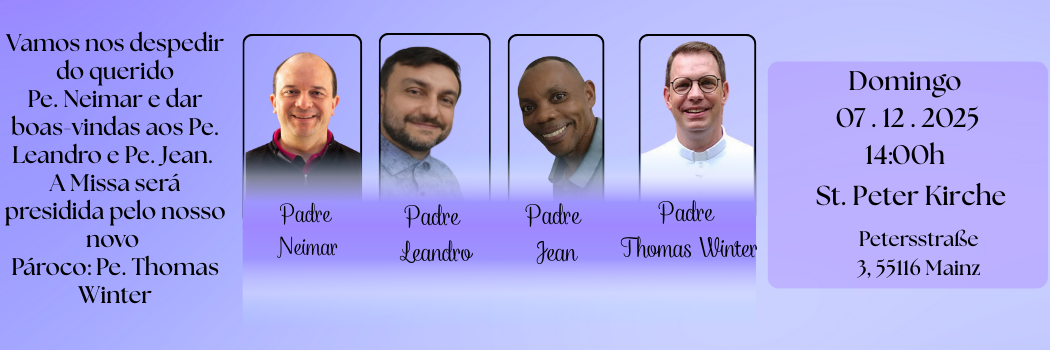 A partir do dia 29 de Janeiro de 2023, todas as Eucaristias Dominicais em língua portuguesa serão celebradas às 10:00 na Igreja de St. Quintin (Quintinsstraße 5, 55116 Mainz).