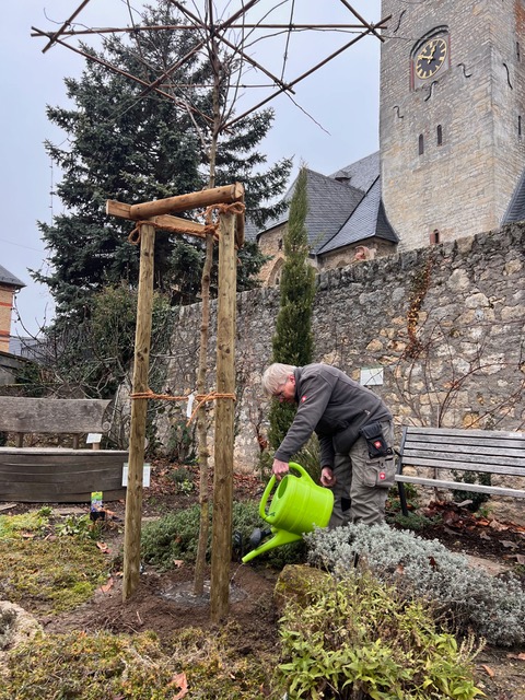 Zudem werden wir eine Bewässerungsanlage installieren, um zielgerichtet und nachhaltig unsere Pflanzen bewässern zu können und den Arbeitsaufwand für unser Team zu reduzieren. Das ist deshalb machbar, da der Bibelgarten nun bald mit Quellwasser vom Schlossvippacher Platz versorgt werden kann. Wir bedanken uns bei der Ortsgemeindeverwaltung, dass hier die Möglichkeit geschaffen wurde das Quellwasser für die Versorgung der Pflanzen nutzen zu können. Das Bibelgartenteam wird die Wasserleitung so installieren, dass das Wasser bis zur Backhausgasse weiterfließt.