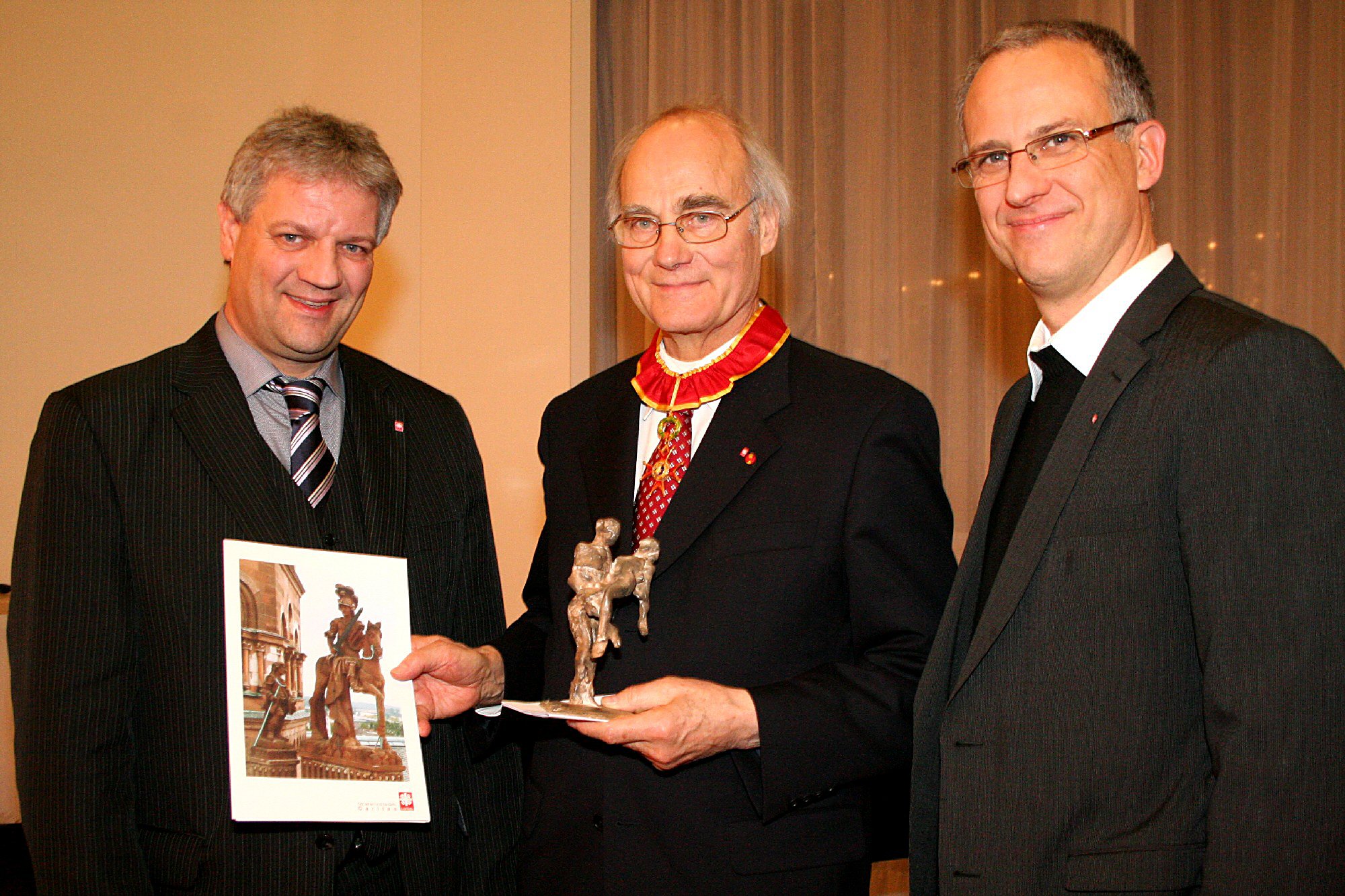 Lehmann unterstrich in seiner Laudatio, dass Schulze als Direktor des Caritasverbandes Darmstadt der Katholischen Kirche in und um Darmstadt „viel Anerkennung" verschafft habe. Vor allem hinsichtlich der Zusammenarbeit zwischen Caritas und Pfarrgemeinden habe Schulze „Pionierarbeit" geleistet. „Die Caritasarbeit in den Gemeinden ist lebendiger geworden", sagte der Kardinal. Viel Anerkennung habe Schulze auch dafür gewonnen, dass er sich für das ökonomische Denken bei der Caritas eingesetzt habe. Lehmann würdigte zudem Schulzes vielfaches ehrenamtliches Engagement in den Räten und Stiftungen des Bistums und dankte Schulze für seine große Loyalität. Er wies darauf hin, dass Schulze weiterhin als Berater die Pfarrgemeinden bei der Gründung von Stiftungen unterstütze. Außerdem überreichten die Mainzer Diözesancaritasdirektoren Prälat Hans-Jürgen Eberhardt und Thomas Domnick Schulze eine Statue des Barmherzigen Samariters. Der Diözesancaritasverband wird die von dem Mainzer Künstler Karlheinz Oswald gestaltete Statue zukünftig an besondere Persönlichkeiten verleihen. Zu Beginn hatte der Generalvikar des Bistums Mainz, Prälat Dietmar Giebelmann, die Gäste begrüßt.